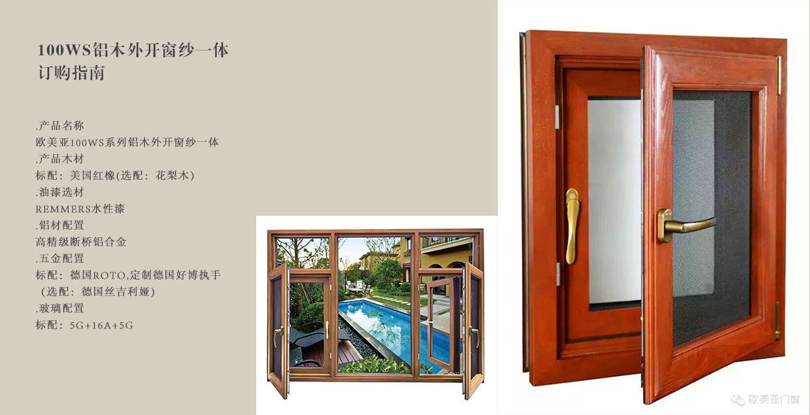 欧美亚门窗产品设计高雅、做工精细,造型美观,具有优良的保温、节能、隔音、降噪等性能。并以其良好的通风、采光效果和过硬的产品质量被越来越多的客户所青睐。